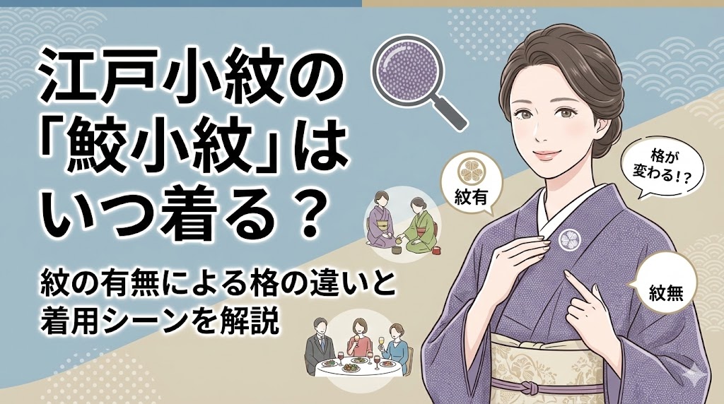 このルールを知らないと、せっかくの着物が場違いになってしまったり、逆にカジュアルすぎて恥をかいてしまったりすることも。この記事では、鮫小紋をいつ着るべきか、紋の有無による格の違いと具体的なシーンについて詳しく解説します。あなたの鮫小紋が活躍する場所を一緒に探していきましょう!