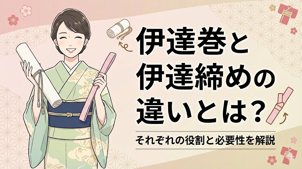 着付けを始めようとしたとき、道具の名前が似ていて混乱してしまった経験はありませんか。特に着物の「伊達巻」と「伊達締め」の違いは、多くの初心者が最初につまずく...
